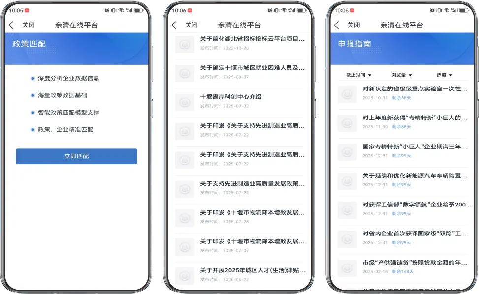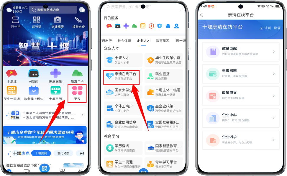 十堰新版“亲清在线”平台上线试运行来源:十堰政府网 9月19日,十堰新版“亲清在线”平台上线试运行,启动公开测试,进一步优化平台功能。企业用户可打开i武当APP,进入企业人才专区“亲清在线平台”体验。